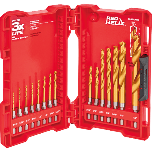 MILWAUKEE ELECTRIC TOOLThe MILWAUKEE® 15 Piece SHOCKWAVE™ RED HELIX™ Titanium Drill Bit Set is engineered for extreme durability and long life. The QUAD EDGE™ tip deliver...