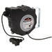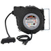Great for use in any garage, workshop or jobsite, this reel stores 40ft of 12 gauge cord neatly and compactly. The triple tap grounded outlet provides up to 15 AMPs of power. Includes hardware.