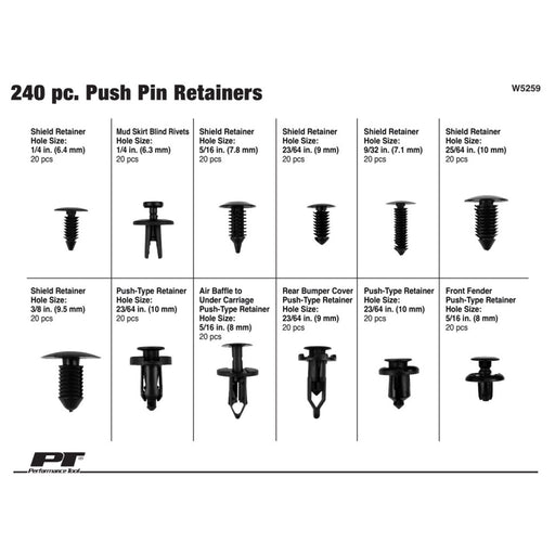 Keep push pin retainers organized with this assortment that includes the most common sizes. Comes with a fastener remover tool. Today's newer veh...