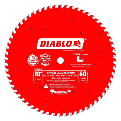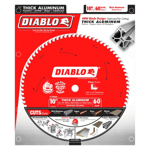 DIABLO TOOLSDiablo's next generation Aluminum saw blades are optimized for cutting thin (up to 1/8”), medium (3/32”-1/4”) and thick (3/16”-7/16”) aluminum meta...
