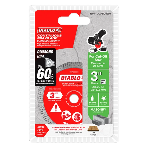 DIABLO TOOLSDiablo's diamond continuous rim masonry cut-off discs provide cleaner and precise cuts in granite, marble, porcelain and tile. These diamond rimmed...