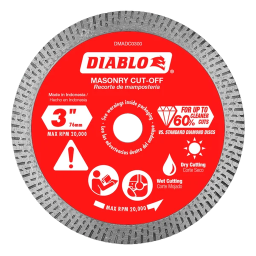 DIABLO TOOLSDiablo's diamond segmented turbo rim masonry cut-off discs provide extreme durability, faster cuts and longer life in concrete, concrete with rebar...