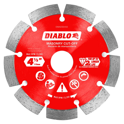 Diablo's diamond segmented masonry cut-off blades provide extreme durability and longer life in concrete, concrete with rebar, brick and cinder blo...