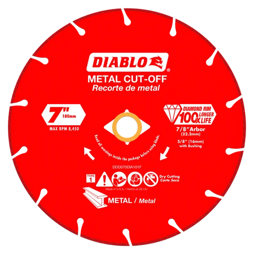 Diablo's Diamond Metal Cut-Off Discs deliver extreme durability, minimal downtime and increased productivity. These diamond rimmed wheels deliver 1...