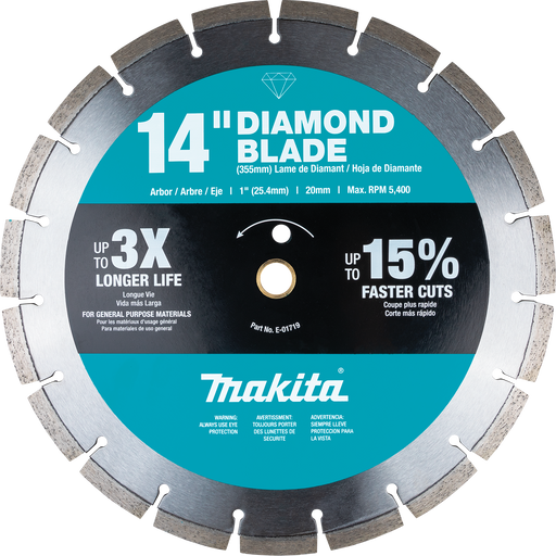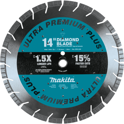 The Makita 14" Ultra-Premium Plus Segmented Diamond Blade is the new standard in diamond blades. Each segment is scrutinized under quality control ...