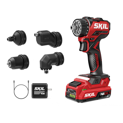 SkilEasily access hard-to-reach areas like tight cabinet corners and edges with the SKIL Brushless 20V Compact Multi-Head Drill Driver. Four interchang...