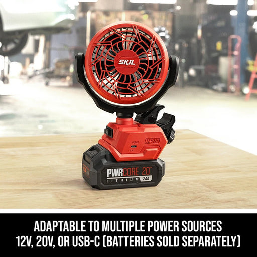 SkilThe SKIL 12V/20V Brushless 4 In. Clamp Fan can be powered by either PWRCORE 12™ or PWRCORE 20™ batteries. It also offers a hybrid AC option to be p...