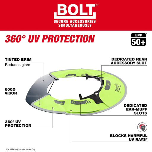 MILWAUKEE ELECTRIC TOOLOur BOLT™ Sun Visor provides 360° UV protection and everyday wear. Securely clip into any MILWAUKEE® Safety Helmets and Hard Hats. The Milwaukee® S...