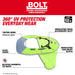 Our BOLT™ Sun Visor with Sunshade provides 360° UV protection and everyday wear. Securely clip into any MILWAUKEE® Safety Helmets and Hard Hats. The Milwaukee® Sun Visor with Sunshade is designed with a tinted brim to reduce glare without reducing your upward vision. The mesh portion keeps you cool. The front visor can be used with a face shield or eye protection when flipped back into retention slots. The dedicated earmuff and rear accessory slots allow you to use additional BOLT ™ accessories simultaneously.