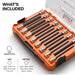 - Socket set includes 5/32-Inch through 1/2-Inch and 4 mm through 12 mm hex bit sockets