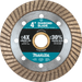 The Makita 4" Turbo Rim Diamond Blade is ideal for general purpose cutting applications including block, brick and cured concrete. The turbo rim design is engineered for constant contact with the material to deliver a smoother finish than segmented blades. Diamond blades are part of Makita's growing line-up of solutions for concrete applications.