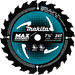 The Makita 7-1/4 in. 24T Carbide-Tipped Max Efficiency Ultra-Thin Kerf Framing Saw Blade is ideal for a framers using cordless circular saws for a full range of wood cutting applications. The ultra-thin kerf design (only 0.057 in.) and specially engineered blade teeth to assist in reducing the load put on the tool while cutting, with a reduced swing width that allows for smoother material removal with less cutting resistance. The result is increased cutting efficiency, and users get up to 70% faster cutting and up to 70% more cuts per charge compared to standard blades. The high grade Tungsten Carbide tips are engineered for improved durability and longer blade life, and the special ATAFR (Alternate Top Alternate Face with Raker) carbide tips provide smoother and caster cuts. Added features including a blade coating for reduced pitch build-up.
