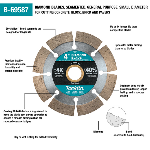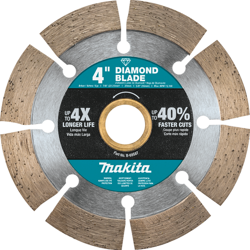 MAKITA USA INCThe Makita 4" Segmented Rim Diamond Blade is ideal for general purpose cutting applications including block, brick and cured concrete. The segmente...