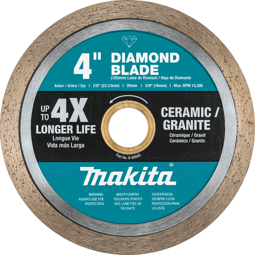 MAKITA USA INCThe Makita 4" Continuous Rim Diamond Blade is ideal for general purpose cutting applications including porcelain, stone and tile. The continuous ri...
