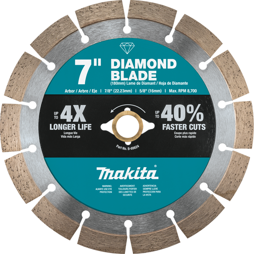 MAKITA USA INCThe Makita 7" Segmented Rim Diamond Blade is ideal for general purpose cutting applications including block, brick and cured concrete. The segmente...