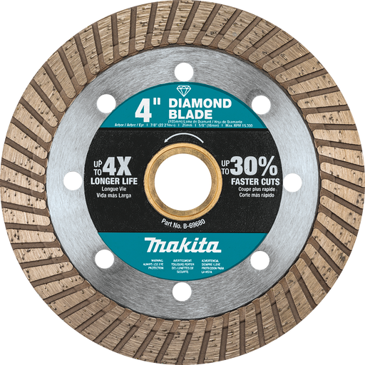 MAKITA USA INCThe Makita 4" Turbo Rim Diamond Blade is ideal for general purpose cutting applications including block, brick and cured concrete. The turbo rim de...