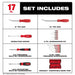 Our 17pc Screwdriver & Pry Bar Set features screwdrivers with high-leverage handles and magnetic tips. The set also includes pry bars with an I-Beam shank for up to 40% more prying strength. Each screwdriver's bit type is marked on the tool's cap, allowing you to identify them for increased efficiency quickly. The comfortable tri-lobe handles will enable you to apply more leverage while using the screwdrivers comfortably, and magnetic tips help you hold screws in place while driving. The pry bar's all-metal core improves durability, allowing you to get the job done every time. A hammer-ready strike cap protects the tri-lobe handle from damage and improves your ability to work in tight places. The durable reinforced tray features high-contrast EVA foam and easy-to-read size labeling for quick tool identification. The trays are designed for use in PACKOUT™ Drawer Tool Boxes (48-22-8444, 48-22-8442, 48-22-8447). Pry bars are covered by our Milwaukee® Lifetime Guarantee. Our Milwaukee® Limited Lifetime Warranty backs screwdrivers.