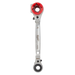 The MILWAUKEE® Lineman's 5-in-1 Ratcheting Wrench features the most durable ratchet. The ratcheting wrench has a built-in hammer providing you with a dedicated surface for hammering. It also has large directional switches that you can easily press while wearing gloves. It has a durable forged steel construction providing you with longer tool life. The high-leverage wrench fits 3/4", 1", and 1-1/8" square hardware and 9/16" and 3/4" standard hardware.