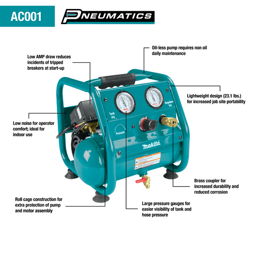 MAKITA USA INCCompressors are workhorse tools on the job site and in the work shop. Makita® Air Compressors are favorites for their faster recovery time, lower n...