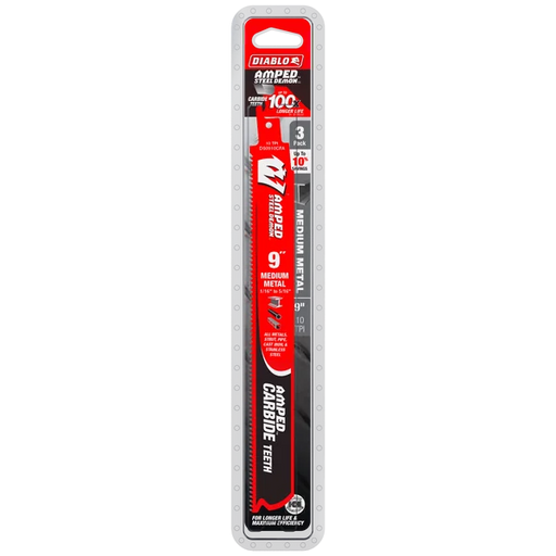 View full details9" 10TPI AMPED™ Steel Demon™ Carbide Teeth Reciprocating Saw Blades for Medium Metal (3-Pack)